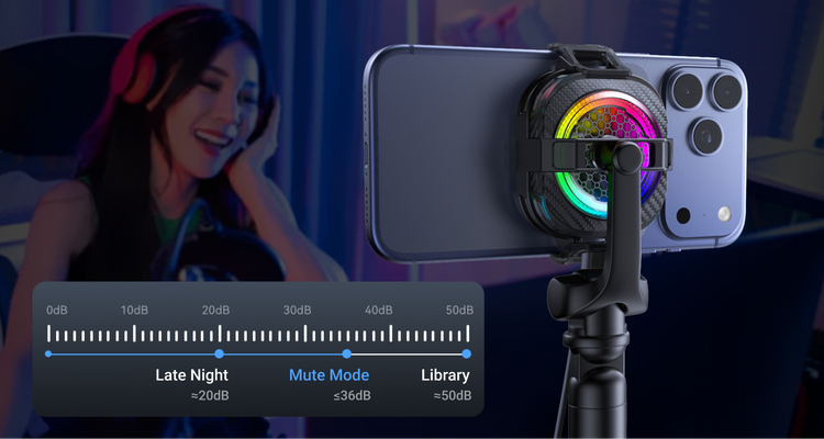 Built-in live streaming mute mode optimized for minimal noise.